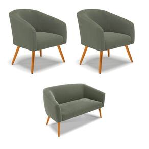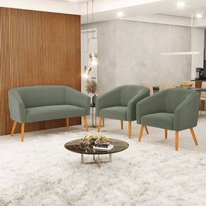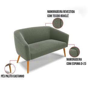 Namoradeira e 2 Poltronas Pé Palito Castanho Stella Bouclê D03 - D`Rossi - Verde Cinza