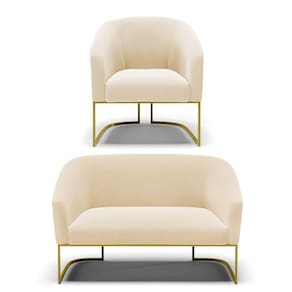 O Sofá Namoradeira 2 lugares com Poltrona Stella é uma peça que combina elegância, conforto e durabilidade. Este conjunto tem um design moderno e sofisticado, com Base Industrial Dourado e revestimento em tecido Suede, que harmonizam com qualquer ambiente. Ele é ideal para sala de estar, recepções, mesa de jantar ou qualquer outro espaço que você queira decorar com estilo e bom gosto. Ele tem uma estrutura em madeira de reflorestamento eucalipto, que garante a resistência e a sustentabilidade do produto. Ele suporta até 120 kg de peso, podendo ser utilizado por pessoas de diferentes biotipos. Ele tem um acabamento reforçado e espuma de qualidade D23, que oferece maciez e aconchego. Tem pés em aço carbono e pintura eletrostática, que protegem o produto contra corrosão e desgaste. Ele tem assento com persintas elásticas, que proporcionam flexibilidade e conforto. O kit Stella é um produto de alta qualidade, beleza e funcionalidade. Ele é fácil de transportar, pois tem um peso leve e um tamanho compacto. O Sofá Namoradeira 2 lugares com Poltrona Stella é um produto que vai fazer a diferença na sua decoração e no seu bem-estar. Ele vai trazer charme, conforto e durabilidade para o seu ambiente. Aproveite essa oferta e leve para casa um Sofá Namoradeira 2 lugares com Poltrona qualidade por um preço incrível. Essa é a sua chance de ter um kit maravilhoso por um preço imperdível. Corra e garanta seu Sofá Namoradeira 2 lugares com Poltrona antes que acabe o estoque!