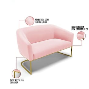O Sofá Namoradeira 2 lugares com Poltrona Stella é uma peça que combina elegância, conforto e durabilidade. Este conjunto tem um design moderno e sofisticado, com Base Industrial Dourado e revestimento em tecido Suede Rosa Bebê, que harmonizam com qualquer ambiente. Ele é ideal para sala de estar, recepções, mesa de jantar ou qualquer outro espaço que você queira decorar com estilo e bom gosto. Ele tem uma estrutura em madeira de reflorestamento eucalipto, que garante a resistência e a sustentabilidade do produto. Ele suporta até 120 kg de peso, podendo ser utilizado por pessoas de diferentes biotipos. Ele tem um acabamento reforçado e espuma de qualidade D23, que oferece maciez e aconchego. Tem pés em aço carbono e pintura eletrostática, que protegem o produto contra corrosão e desgaste. Ele tem assento com persintas elásticas, que proporcionam flexibilidade e conforto. O kit Stella é um produto de alta qualidade, beleza e funcionalidade. Ele é fácil de transportar, pois tem um peso leve e um tamanho compacto. O Sofá Namoradeira 2 lugares com Poltrona Stella é um produto que vai fazer a diferença na sua decoração e no seu bem-estar. Ele vai trazer charme, conforto e durabilidade para o seu ambiente. Aproveite essa oferta e leve para casa um Sofá Namoradeira 2 lugares com Poltrona qualidade por um preço incrível. Essa é a sua chance de ter um kit maravilhoso por um preço imperdível. Corra e garanta seu Sofá Namoradeira 2 lugares com Poltrona antes que acabe o estoque!