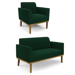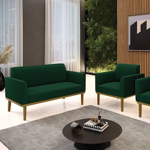 Namoradeira e Poltrona Base Madeira Castanho Marisa Bouclê D03 - D`Rossi - Verde