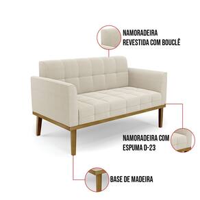 O Sofá Namoradeira e Poltrona Elisa é uma mobília que combina elegância, conforto e durabilidade. Ele tem um design retrô e sofisticado, com Base de Madeira Fixa Castanho e revestimento em tecido Bouclê. Ele é ideal para sala de estar, recepções, escritórios, cozinhas ou qualquer outro espaço que você queira decorar com estilo e bom gosto. Ele tem uma estrutura em madeira de reflorestamento eucalipto, que garante a resistência e a sustentabilidade do produto. Ele suporta até 180 kg de peso, podendo ser utilizada por pessoas de diferentes biotipos. Ele tem um acabamento reforçado e espuma de qualidade D23, que oferece maciez e aconchego. Ele contém detalhes de costura no encosto e assento, resultando em um acabamento impecável, conferindo muito mais valor e elegância ao produto. O Sofá Namoradeira e Poltrona Elisa é um móvel de alta qualidade, beleza e funcionalidade. Ele é fácil de transportar, pois tem um peso leve e um tamanho compacto. O Sofá Namoradeira e Poltrona Elisa é um produto que vai fazer a diferença na sua decoração e no seu bem-estar. Ele vai trazer charme, conforto e durabilidade para o seu ambiente. Aproveite essa oferta e leve para casa um Sofá Namoradeira e Poltrona de qualidade por um preço incrível. Essa é a sua chance de ter um Sofá Namoradeira e Poltrona maravilhoso por um preço imperdível. Corra e garanta o seu antes que acabe o estoque!