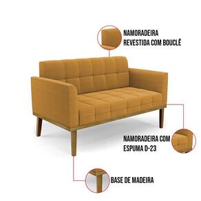 O Sofá Namoradeira e Poltrona Elisa é uma mobília que combina elegância, conforto e durabilidade. Ele tem um design retrô e sofisticado, com Base de Madeira Fixa Castanho e revestimento em tecido Bouclê Mostarda, que harmonizam com qualquer ambiente. Ele é ideal para sala de estar, recepções, escritórios, cozinhas ou qualquer outro espaço que você queira decorar com estilo e bom gosto. Ele tem uma estrutura em madeira de reflorestamento eucalipto, que garante a resistência e a sustentabilidade do produto. Ele suporta até 180 kg de peso, podendo ser utilizada por pessoas de diferentes biotipos. Ele tem um acabamento reforçado e espuma de qualidade D23, que oferece maciez e aconchego. Ele contém detalhes de costura no encosto e assento, resultando em um acabamento impecável, conferindo muito mais valor e elegância ao produto. O Sofá Namoradeira e Poltrona Elisa é um móvel de alta qualidade, beleza e funcionalidade. Ele é fácil de transportar, pois tem um peso leve e um tamanho compacto. O Sofá Namoradeira e Poltrona Elisa é um produto que vai fazer a diferença na sua decoração e no seu bem-estar. Ele vai trazer charme, conforto e durabilidade para o seu ambiente. Aproveite essa oferta e leve para casa um Sofá Namoradeira e Poltrona de qualidade por um preço incrível. Essa é a sua chance de ter um Sofá Namoradeira e Poltrona maravilhoso por um preço imperdível. Corra e garanta o seu antes que acabe o estoque!