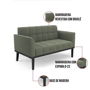 Namoradeira E Poltrona Base Madeira Fixa Pto Elisa Bouclê D03 - D?rossi Cor Verde Pistache O Sofá Namoradeira e Poltrona Elisa é uma mobília que combina elegância, conforto e durabilidade. Ele tem um design retrô e sofisticado, com Base de Madeira Fixa Preto e revestimento em tecido Bouclê. Ele é ideal para sala de estar, recepções, escritórios, cozinhas ou qualquer outro espaço que você queira decorar com estilo e bom gosto. Ele tem uma estrutura em madeira de reflorestamento eucalipto, que garante a resistência e a sustentabilidade do produto. Ele suporta até 180 kg de peso, podendo ser utilizada por pessoas de diferentes biotipos. Ele tem um acabamento reforçado e espuma de qualidade D23, que oferece maciez e aconchego. Ele contém detalhes de costura no encosto e assento, resultando em um acabamento impecável, conferindo muito mais valor e elegância ao produto. O Sofá Namoradeira e Poltrona Elisa é um móvel de alta qualidade, beleza e funcionalidade. Ele é fácil de transportar, pois tem um peso leve e um tamanho compacto. O Sofá Namoradeira e Poltrona Elisa é um produto que vai fazer a diferença na sua decoração e no seu bem-estar. Ele vai trazer charme, conforto e durabilidade para o seu ambiente. Aproveite essa e leve para casa um Sofá Namoradeira e Poltrona de qualidade por um preço incrível. Essa é a sua chance de ter um Sofá Namoradeira e Poltrona maravilhoso por um preço imperdível. Corra e garanta o seu antes que acabe o estoque! Dimensões da Poltrona: Altura Total: 81 cm Largura Total: 64 cm Profundidade Total: 64 cm Altura do Encosto: 36 cm Largura do Assento: 47 cm Profundidade do Assento: 48 cm Altura do chão ao Assento: 45 cm Espessura do Assento: 18 cm Espessura do braço: 9 cm Altura interna do braço: 20 cm Tamanho dos pés: 30 cm Peso: 18 kg Dimensões da Namoradeira: Altura Total: 81 cm Largura Total: 114 cm Profundidade Total: 64 cm Altura do Encosto: 36 cm Largura do Assento: 96 cm Profundidade do Assento: 48 cm Altura do chão ao Assento: 45 cm Espessura do Assento: 18 cm Espessura do braço: 9 cm Altura interna do braço: 20 cm Tamanho dos pés: 30 cm Peso: 24 kg Especificações do Produto: Estrutura: Madeira Eucalipto Espuma: D-23 Tecido: Bouclê Peso Suportado: Até 180 Kg Tipo de Pés: Base de Madeira Preto Tipo de Encosto: Fixo Tipo de Assento: Fixo Complexidade da Montagem: Baixo Montagem: O produto vai montado, apenas parafusar a base Garantia: 90 dias contra de fabricação Instruções de Limpeza: Utilizar um pano limpo e levemente úmido Você irá Receber: 01 Sofá Namoradeira e 01 Poltrona - Entregue em: 02 Volumes