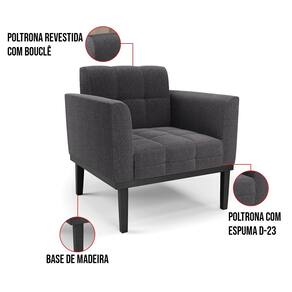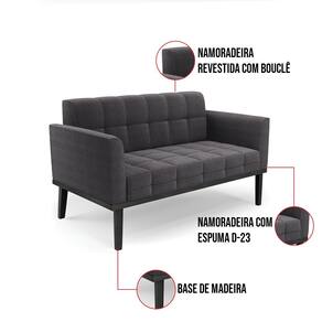 O Sofá Namoradeira e Poltrona Elisa é uma mobília que combina elegância, conforto e durabilidade. Ele tem um design retrô e sofisticado, com Base de Madeira Fixa Preto e revestimento em tecido Bouclê Grafite, que harmonizam com qualquer ambiente. Ele é ideal para sala de estar, recepções, escritórios, cozinhas ou qualquer outro espaço que você queira decorar com estilo e bom gosto. Ele tem uma estrutura em madeira de reflorestamento eucalipto, que garante a resistência e a sustentabilidade do produto. Ele suporta até 180 kg de peso, podendo ser utilizada por pessoas de diferentes biotipos. Ele tem um acabamento reforçado e espuma de qualidade D23, que oferece maciez e aconchego. Ele contém detalhes de costura no encosto e assento, resultando em um acabamento impecável, conferindo muito mais valor e elegância ao produto. O Sofá Namoradeira e Poltrona Elisa é um móvel de alta qualidade, beleza e funcionalidade. Ele é fácil de transportar, pois tem um peso leve e um tamanho compacto. O Sofá Namoradeira e Poltrona Elisa é um produto que vai fazer a diferença na sua decoração e no seu bem-estar. Ele vai trazer charme, conforto e durabilidade para o seu ambiente. Aproveite essa oferta e leve para casa um Sofá Namoradeira e Poltrona de qualidade por um preço incrível. Essa é a sua chance de ter um Sofá Namoradeira e Poltrona maravilhoso por um preço imperdível. Corra e garanta o seu antes que acabe o estoque!