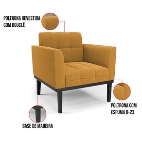 O Sofá Namoradeira e Poltrona Elisa é uma mobília que combina elegância, conforto e durabilidade. Ele tem um design retrô e sofisticado, com Base de Madeira Fixa Preto e revestimento em tecido Bouclê Mostarda, que harmonizam com qualquer ambiente. Ele é ideal para sala de estar, recepções, escritórios, cozinhas ou qualquer outro espaço que você queira decorar com estilo e bom gosto. Ele tem uma estrutura em madeira de reflorestamento eucalipto, que garante a resistência e a sustentabilidade do produto. Ele suporta até 180 kg de peso, podendo ser utilizada por pessoas de diferentes biotipos. Ele tem um acabamento reforçado e espuma de qualidade D23, que oferece maciez e aconchego. Ele contém detalhes de costura no encosto e assento, resultando em um acabamento impecável, conferindo muito mais valor e elegância ao produto. O Sofá Namoradeira e Poltrona Elisa é um móvel de alta qualidade, beleza e funcionalidade. Ele é fácil de transportar, pois tem um peso leve e um tamanho compacto. O Sofá Namoradeira e Poltrona Elisa é um produto que vai fazer a diferença na sua decoração e no seu bem-estar. Ele vai trazer charme, conforto e durabilidade para o seu ambiente. Aproveite essa oferta e leve para casa um Sofá Namoradeira e Poltrona de qualidade por um preço incrível. Essa é a sua chance de ter um Sofá Namoradeira e Poltrona maravilhoso por um preço imperdível. Corra e garanta o seu antes que acabe o estoque!