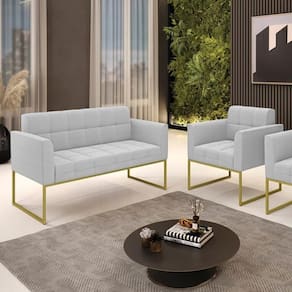 A Namoradeira e Poltrona Industrial Dourado Ana Bouclé Cinza, da Ibiza é o conjunto ideal para quem busca beleza, conforto e versatilidade. Você pode usar na sua Sala De Estar, recepção ou qualquer outro ambiente que desejar.