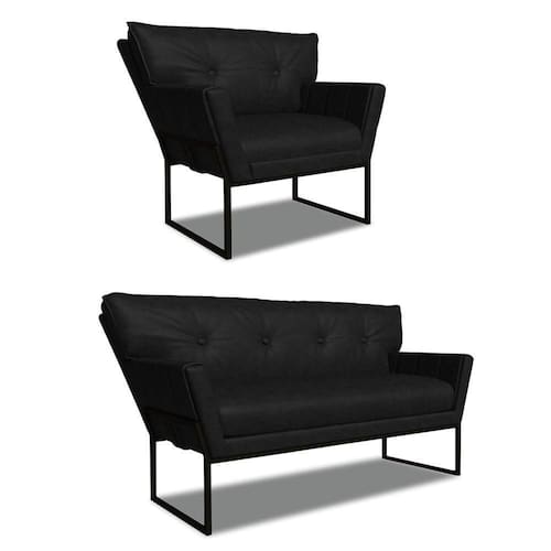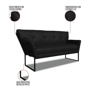 O Sofá Namoradeira e Poltrona Anitta é uma peça que combina beleza, conforto e funcionalidade. Ele tem um design contemporâneo, sofisticado e um revestimento em tecido Sintético PU Preto que harmonizam com qualquer ambiente. Possui uma base industrial preto com um belo detalhe trabalhado no metal, que além de adicionar um toque de charme à peça, oferece um suporte sólido e , garantindo conforto superior ao sentar. Ideal para sala de estar, recepções, escritórios ou qualquer outro espaço que você queira decorar com estilo e bom gosto. Produzido cuidadosamente em madeira de reflorestamento eucalipto, que garante a resistência e a sustentabilidade do produto. Ele suporta até 180 kg de peso, podendo ser utilizado por pessoas de diferentes biotipos. Ele tem um acabamento reforçado e espuma de qualidade D23, que oferece maciez e aconchego. A almofada fixa do encosto é revestida com fibra siliconada e conta com um detalhe elegante em botonê, que não só valoriza o design, mas também proporciona uma sensação de conforto inigualável. O encosto levemente triangular de ambos adiciona uma estética exclusiva, enquanto os braços, com delicados frisos na costura enriquecem ainda mais o produto. O Sofá Namoradeira e Poltrona Anitta é um kit de alta qualidade, sutileza e versatilidade. Ele é fácil de transportar, pois tem um peso leve e um tamanho compacto. O Sofá Namoradeira e Poltrona Anitta é um produto que vai fazer a diferença na sua decoração e no seu bem-estar. Ele vai trazer personalidade e inovação para o seu ambiente. Aproveite essa e leve para casa um sofá namoradeira e poltrona de qualidade por um preço incrível. Essa é a sua chance de ter um conjunto atraente na sua decoração por um preço imperdível. Corra e garanta o seu antes que acabe o estoque!
