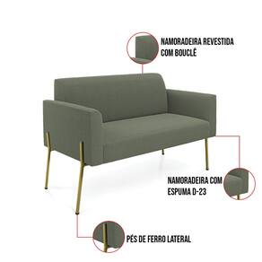 O Sofá Namoradeira e Poltrona Marisa é a escolha perfeita para quem deseja unir conforto e comodidade em um estilo elegante. Com um design único, ele possui Pés de Ferro Lateral Dourado que harmoniza com o seu belíssimo tom Pistache, criando uma combinação elegante de conforto e estilo. Ele é perfeito para quem busca móveis que não só sejam bonitos, mas que também proporcionem bem-estar. Ideal para compor salas de estar, recepções, bibliotecas, salas de leitura, espaços de design e até áreas comerciais, essa peça versátil é pensada para ambientes que excluam beleza e aconchego. Sua estrutura, em madeira de reflorestamento de eucalipto, oferece resistência e sustentabilidade, suportando até 180 kg, garantindo segurança para usuários de diferentes biotipos. O conforto é outro destaque, com estofado em espuma prorelax D-23, que proporciona suporte e maciez ideais. Revestido em Bouclê, um tecido maleável e sofisticado, Sofá Namoradeira e Poltrona Marisa segue a tendência do momento com um toque suave e quente, remetendo à textura natural da lã. Leve e fácil de transportar, o Sofá Namoradeira e Poltrona é um item que agrega charme e durabilidade ao seu espaço. Não perca a oportunidade de adquirir essa peça exclusiva que fará toda a diferença na sua decoração e no seu bem-estar. Aproveite agora e garanta o seu antes que o estoque acabe!