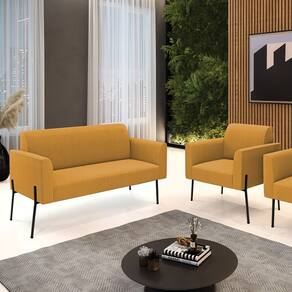 Namoradeira e Poltrona Pé Ferro Preto Marisa Bouclê D03 - D`Rossi - Mostarda