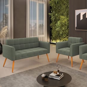 O Sofá Namoradeira e Poltrona Elisa é uma mobília que combina elegância, conforto e durabilidade. Ele tem um design retrô e sofisticado, com Pés Palito Castanho e revestimento em tecido Bouclê Menta, que harmonizam com qualquer ambiente. Ele é ideal para sala de estar, recepções, escritórios, cozinhas ou qualquer outro espaço que você queira decorar com estilo e bom gosto. Ele tem uma estrutura em madeira de reflorestamento eucalipto, que garante a resistência e a sustentabilidade do produto. Ele suporta até 180 kg de peso, podendo ser utilizada por pessoas de diferentes biotipos. Ele tem um acabamento reforçado e espuma de qualidade D23, que oferece maciez e aconchego. Ele contém detalhes de costura no encosto e assento, resultando em um acabamento impecável, conferindo muito mais valor e elegância ao produto. O Sofá Namoradeira e Poltrona Elisa é um móvel de alta qualidade, beleza e funcionalidade. Ele é fácil de transportar, pois tem um peso leve e um tamanho compacto. O Sofá Namoradeira e Poltrona Elisa é um produto que vai fazer a diferença na sua decoração e no seu bem-estar. Ele vai trazer charme, conforto e durabilidade para o seu ambiente. Aproveite essa oferta e leve para casa um Sofá Namoradeira e Poltrona de qualidade por um preço incrível. Essa é a sua chance de ter um Sofá Namoradeira e Poltrona maravilhoso por um preço imperdível. Corra e garanta o seu antes que acabe o estoque!