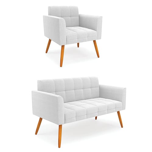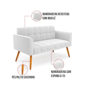 O Sofá Namoradeira e Poltrona Elisa é uma mobília que combina elegância, conforto e durabilidade. Ele tem um design retrô e sofisticado, com Pés Palito Castanho e revestimento em tecido Bouclê Off White, que harmonizam com qualquer ambiente. Ele é ideal para sala de estar, recepções, escritórios, cozinhas ou qualquer outro espaço que você queira decorar com estilo e bom gosto. Ele tem uma estrutura em madeira de reflorestamento eucalipto, que garante a resistência e a sustentabilidade do produto. Ele suporta até 180 kg de peso, podendo ser utilizada por pessoas de diferentes biotipos. Ele tem um acabamento reforçado e espuma de qualidade D23, que oferece maciez e aconchego. Ele contém detalhes de costura no encosto e assento, resultando em um acabamento impecável, conferindo muito mais valor e elegância ao produto. O Sofá Namoradeira e Poltrona Elisa é um móvel de alta qualidade, beleza e funcionalidade. Ele é fácil de transportar, pois tem um peso leve e um tamanho compacto. O Sofá Namoradeira e Poltrona Elisa é um produto que vai fazer a diferença na sua decoração e no seu bem-estar. Ele vai trazer charme, conforto e durabilidade para o seu ambiente. Aproveite essa oferta e leve para casa um Sofá Namoradeira e Poltrona de qualidade por um preço incrível. Essa é a sua chance de ter um Sofá Namoradeira e Poltrona maravilhoso por um preço imperdível. Corra e garanta o seu antes que acabe o estoque!