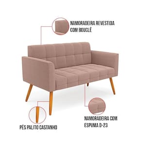O Sofá Namoradeira e Poltrona Elisa é uma mobília que combina elegância, conforto e durabilidade. Ele tem um design retrô e sofisticado, com Pés Palito Castanho e revestimento em tecido Bouclê Rosê, que harmonizam com qualquer ambiente. Ele é ideal para sala de estar, recepções, escritórios, cozinhas ou qualquer outro espaço que você queira decorar com estilo e bom gosto. Ele tem uma estrutura em madeira de reflorestamento eucalipto, que garante a resistência e a sustentabilidade do produto. Ele suporta até 180 kg de peso, podendo ser utilizada por pessoas de diferentes biotipos. Ele tem um acabamento reforçado e espuma de qualidade D23, que oferece maciez e aconchego. Ele contém detalhes de costura no encosto e assento, resultando em um acabamento impecável, conferindo muito mais valor e elegância ao produto. O Sofá Namoradeira e Poltrona Elisa é um móvel de alta qualidade, beleza e funcionalidade. Ele é fácil de transportar, pois tem um peso leve e um tamanho compacto. O Sofá Namoradeira e Poltrona Elisa é um produto que vai fazer a diferença na sua decoração e no seu bem-estar. Ele vai trazer charme, conforto e durabilidade para o seu ambiente. Aproveite essa oferta e leve para casa um Sofá Namoradeira e Poltrona de qualidade por um preço incrível. Essa é a sua chance de ter um Sofá Namoradeira e Poltrona maravilhoso por um preço imperdível. Corra e garanta o seu antes que acabe o estoque!
