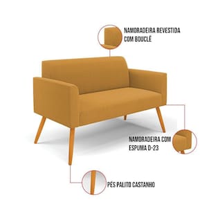 O Sofá Namoradeira e Poltrona Marisa é a escolha perfeita para quem deseja unir conforto e comodidade em um estilo elegante. Com um design único, ele possui Pés Palito Castanho que harmoniza com o seu belíssimo tom Mostarda, criando uma combinação elegante de conforto e estilo. Ele é perfeito para quem busca móveis que não só sejam bonitos, mas que também proporcionem bem-estar. Ideal para compor salas de estar, recepções, bibliotecas, salas de leitura, espaços de design e até áreas comerciais, essa peça versátil é pensada para ambientes que excluam beleza e aconchego. Sua estrutura, em madeira de reflorestamento de eucalipto, oferece resistência e sustentabilidade, suportando até 180 kg, garantindo segurança para usuários de diferentes biotipos. O conforto é outro destaque, com estofado em espuma prorelax D-23, que proporciona suporte e maciez ideais. Revestido em Bouclê, um tecido maleável e sofisticado, Sofá Namoradeira e Poltrona Marisa segue a tendência do momento com um toque suave e quente, remetendo à textura natural da lã. Leve e fácil de transportar, o Sofá Namoradeira e Poltrona é um item que agrega charme e durabilidade ao seu espaço. Não perca a oportunidade de adquirir essa peça exclusiva que fará toda a diferença na sua decoração e no seu bem-estar. Aproveite agora! OBSERVAÇÃO IMPORTANTE: A é realizada no informado, não realizamos o para andares superiores, como subir escadas, elevadores ou guinchos. Não realizamos montagens, desmontagens ou instalações. Todos esses serviços são de responsabilidade do comprador. Dimensões do Sofá Namoradeira: Altura Total: 81 cm Largura Total: 114 cm Profundidade Total: 64 cm Altura do Encosto: 64 cm Largura do Assento: 96 cm Profundidade do Assento: 48 cm Altura do chão ao Assento: 45 cm Espessura do Braço: 9 cm Altura interna do Braço: 20 cm Espessura do Assento: 18 cm Tamanho dos pés: 30 cm Peso: 20 kg Dimensões do Poltrona: Altura Total: 81 cm Largura Total: 64 cm Profundidade Total: 64 cm Altura do Encosto: 36 cm Largura do Assento: 47 cm Profundidade do Assento: 48 cm Altura do chão ao Assento: 45 cm Espessura do Braço: 9 cm Altura interna do Braço: 20 cm Espessura do Assento: 18 cm Tamanho dos pés: 30 cm Peso: 14 kg Especificações do Produto: Estrutura: Madeira de Reflorestamento de Eucalipto Espuma: D-23 Tecido: Bouclê Peso Suportado: Até 180 Kg Tipo de Pés: Pés Palito de Madeira Tipo de Encosto: Fixo Tipo de Assento: Fixo Complexidade da Montagem: Baixo Montagem: O produto vai montado, apenas rosquear os pés : 90 dias contra de fabricação Instruções de Limpeza: Utilizar um pano limpo e levemente úmido Você irá Receber: 01 Sofá Namoradeira e 01 Poltrona - Entregue em: 02 Volumes