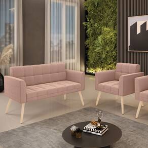 Namoradeira e Poltrona Pé Palito Natural Elisa Bouclê D03 - D`Rossi - Rosê