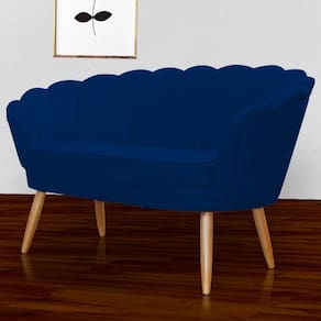 Namoradeira Estofada 2 Lugares Para Sala Comercial Pétala Suede Azul Marinho - LM DECOR