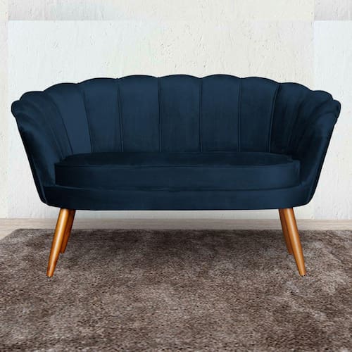 Namoradeira Estofada Decorativa Para Recepção Pétala Veludo Azul Marinho - LM DECOR