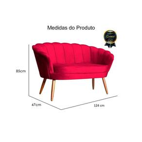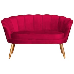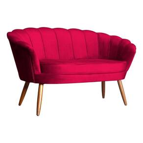 Namoradeira Estofada Pés Palito Para Sala de Estar Pétala Veludo Vermelho - LM DECOR