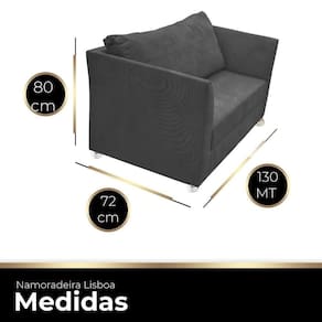 Namoradeira Lisboa 2 Lugares Salão Suede Cinza Grafite