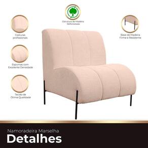 Conheça a Namoradeira Marselha, uma peça de alto padrão que combina conforto e elegância. Feita com espuma de alta qualidade e revestida com o sofisticado tecido Boucle, ela oferece um toque de luxo ao seu ambiente. As costuras profissionais detalhadas garantem um acabamento impecável, enquanto a base de madeira acrescenta um charme natural e duradouro. Perfeita para salas, recepções ou qualquer espaço que mereça um toque de sofisticação.
