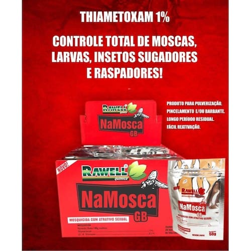 MODO DE USO: Espalhar NAMOSCA no piso das áreas frequentadas pelas moscas na proporção de 30g para cada 10m², ou seja,