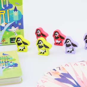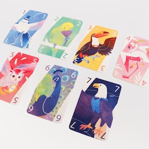 Em Nanatoridori, os jogadores competem para jogar todas as cartas da mão o mais rápido possível. Quanto mais cartas jogadas juntas, mais rápido você alcança o objetivo de jogar sua mão toda. Entretanto, para jogar cartas juntas, elas devem ter o mesmo valor numérico e estarem umas adjacentes às outras em sua mão. Pássaros de todo o mundo migraram para o Reino das Aves para o renomado Concurso de Beleza dos Pavões. Depois de uma noite de festas, as coisas se acalmaram e está na hora de todo mundo voltarpara seus ninhos. Entretanto, durante a festa, os convidados ficaram muito animados e acabaram se misturando, e agora não conseguem encontrar seus irmãos pássaros. Como Guias de Gala, sua função é reunir os animadosfoliões emplumados do mesmo tipo, de forma que eles possam voltar juntos para casa. Já está tarde, e os convidados estão cansados, então procure não demorar muito e ser o último guia a mostrar o caminho, ou você poderá acabar com um ovo na cara! Organizar pássaros fofos é muito divertido, mas é melhor colocá-los todos de uma vez em Nanatoridori. 2-6 Jogadores | 20 min. | Idade: 14+ Conteúdo