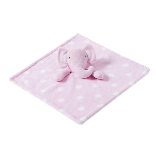 Naninha em tecido microfibra 100% poliéster com toque extra macio, com estampa de bolinhas brancas, cabeça da naninha com enchimento, contribui e estimula o desenvolvimento dos sentidos do seu bebê.