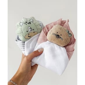 Nossa naninha Papi Friends é super fofa! Vem com uma pelúcia de bichinho super fofa, para que o bebê possa pegar e se sentir confortável e seguro na hora do soninho, na creche ou até mesmo em passeios com entes queridos. Pode se tornar o melhor amigo e item de segurança do bebê enquanto o papai ou mamãe não estão. É feita em tecido SOFT 100% ALGODÃO, mede aproximadamente 40cmx40cm.