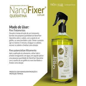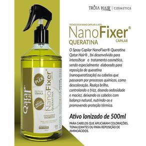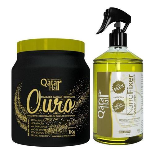 Contém: 1 Nanofixer Queratina Qatar Hair 500ml1 Máscara Ouro Qatar Hair 1kgLançamento Troia Hair NanoFixer Qatar Hair Potencializador de tratamentos Ativo Ionizado. Fórmula Concentrada com Nano Brilho, Nano Reconstrução, Produção de Aminoácidos e Super proteção Térmica Nano Fixer Queratina O NanoFixer Capilar Queratina, foi desenvolvido para potencializar o tratamento capilar, alisamento, nutrição, cauterização, ou outro procedimento capilar, provendo Brilho Natural, Maciez, absorção de nutrientes mais eficiente, estimular a produção de aminoácidos, e repor a queratina dos fios, evitando fios quebradiços.Modo de Usar: Após o uso do Tratamento borrife o produto direto nos fios, deixar agir por 3 minutos, enxágue e finalize como desejar. Máscara Ouro Qatar Banho de Ouro é uma máscara de reconstrução instantânea capaz de restaurar profundamente a fibra capilar graças ao poder regenerador da arginina, D-pantennol e colágeno que juntos transformam a fibra, reconstruindo o córtex. O brilho absoluto fica por conta das nano partículas de ouro que conferem ao fio um brilho 3d impecável.Indicação:Indicado para todos os tipos de cabelo.Ação:Restaura a fibra capilar, regenera, reconstrói o córtex.Resultados:Cabelos Saudáveis;Maciez;Brilho Absoluto.HidrataçãoNutrição