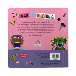 Não Alimente o unicórnio traz uma mensagem divertida e educativa para as crianças: tome cuidado ao oferecer alimentos para seres encantados! Com texto rimado e letras bastão, a história divertida explora diferentes seres encantados, como sereias e fadas. As crianças vão se divertir colocando as mãos nas bocas das criaturas para alimentá-las, enquanto aprendem a importância de respeitar as escolhas alimentares de cada um. Um livro encantador para incentivar a imaginação e o aprendizado de forma lúdica e criativa!