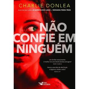 Título do livro : Não Confie em Ninguém Autor : Donlea, Charlie Idioma : Português Editora do livro : Faro Editorial Eireli Capa do livro : Mole Ano de publicação : 2018 Quantidade de páginas : 352 Altura : 230 mm Largura : 160 mm Peso : 353 g Com páginas para colorir : Não Com realidade aumentada : Não Tradutores : Szlak Carlos Gênero do livro : Literatura e ficção Subgêneros do livro : Fcição, Literatura estrangeira, Suspense Tipo de narração : Conto Idade mínima recomendada : 18 anos Data de publicação : 01-12-2018