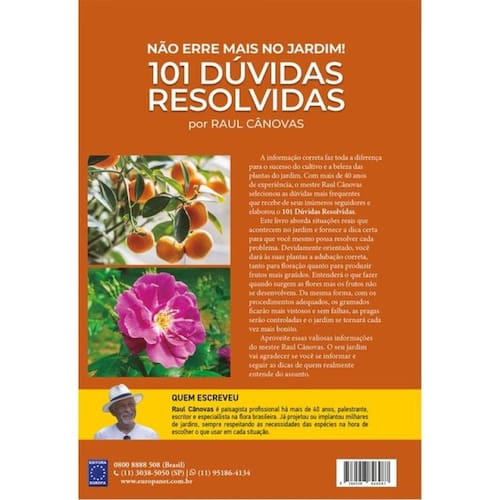 É a informação correta que faz toda diferença entre o sucesso e o fracasso na jardinagem. A partir de seus mais de 40 anos de experiência, o mestre Raul Cânovas selecionou as dúvidas mais frequentes do trabalho de jardinagem para escrever o livro Não erre mais no Jardim - 101 Dúvidas Resolvidas.Sempre a partir de situações reais, o mestre Raul dividiu o livro por tópicos, entre eles, plantio, adubação, frutíferas ou gramados, para facilitar a consulta e permitir que cada um receba rapidamente a informação que busca. O lançamento Não erre mais no Jardim - 101 Dúvidas Resolvidas vai direto ao ponto, com instruções exatas de quem sabe o que está falando para ajudar profissionais e jardinistas a resolverem praticamente todas as dúvidas de quem curte jardinagem.