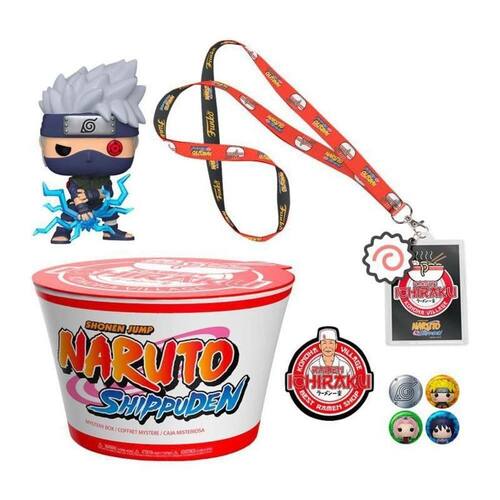 Funko Pop Naruto Shippuden Ramen Shop Kakashi Mystery Box Diretamente do anime Naruto Shippuden, vem o Funko Mystery Box do Kakashi Hatake e o seu Corte Relâmpago em uma edição especial repleta de acessórios e numa embalagem especial imitando um ramen. Kakashi Hatake é um Shinobi de Konohagakure. Kakashi Hatake apareceu pela primeira vez no capítulo 3 do mangá, publicado na revista Weekly Shonen Jump #45 de 18 de Outubro de 1999. Kakashi Hatake recebeu um Sharingan de seu ex-companheiro de equipe, Obito Uchiha, quando era mais jovem, fazendo-o ser conhecido como Kakashi, o Ninja Copiador e Kakashi do Sharingan. Seu prodigioso talento, habilidades e destreza com o Sharingan fizeram dele um dos mais capazes ninjas da aldeia, sendo reconhecido em todo o mundo ninja. Kakashi Hatake acaba sendo nomeado como líder do Time Kakashi, onde ele usa seus anos de experiência para treinar seus alunos para se tornarem ninjas habilidosos de suas próprias maneiras. Logo um tempo após a Quarta Guerra Mundial Shinobi, Kakashi Hatake ocupa o cargo público como o Sexto Hokage antes de eventualmente se aposentar e passá-lo ao seu pupilo Naruto Uzumaki. A figura de Funko Pop Kakashi tem 9,5 cm de altura. O Kit Funko Pop Naruto Shippuden Ramen Shop é composto por: