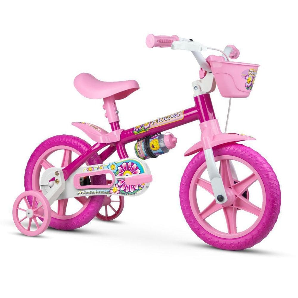 Bicicleta Infantil Nathor Flower com Rodinhas Aro 12 Rosa