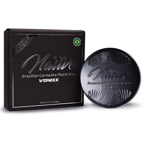 Detalhes da cera native paste wax black 100ml vonixx: Native é uma cera de carnaúba de alta pureza, é livre de qualquer fragrância, mantendo o aroma natural da carnaúba deixando o mais natural. Proporciona um toque aveludado na superfície pintada, promove um brilho quente. Restaura o brilho do veículo, principalmente de cor preta.