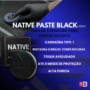 Carnaúba Carros Escuros Native Black VonixxA Native Paste Wax Black Edition da Vonixx é uma cera automotiva premium desenvolvida especialmente para veículos com pintura escura. Com formulação 100% carnaúba tipo 1, oferece um brilho profundo, acabamento impecável e proteção duradoura para a lataria. Ideal para quem busca alto padrão em estética automotiva, ela garante toque seco, excelente repelência à água e facilidade na aplicação.- Indicado para veículos de pintura escura- Com carnaúba tipo 1 puríssima- Brilho intenso e acabamento aveludado- Toque seco com alta repelência à água- Fácil aplicação e remoção- Até 4 meses de proteçãoFicha Técnica:Marca: VonixxLinha: Native Paste Wax Black EditionTipo: Carnaúba tipo 1Aplicação: ManualForma: Pasta sólidaConteúdo:01 Native Paste Wax Black Edition