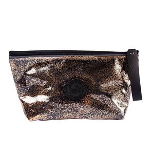 necessaire com um bolso com fechamento em zíper, possui alça para carregar por aí Revestida em PVC com glitter dourado. material: Revestimento: 85% Poliéster e 15% PVC. Enchimento: 100% Fibra Siliconada. Cuidados: Limpar com pano levemente úmido. Não utilizar alvejantes à base de cloro. Não passar o ferro. Medidas aproximadas do produto - Comprimento: 27 cm - Altura: 7 cm - Largura: 7 cm - Peso: 99 g Ficha técnica - Cor: Dourado Marca: Não Informado