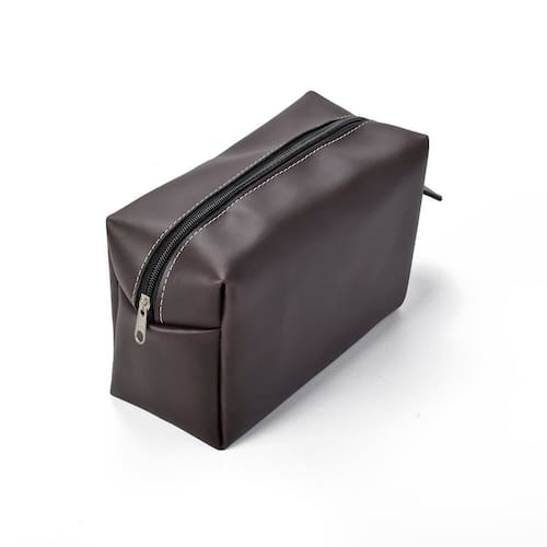 Necessaire em couro sintético preto com pegador lateral.