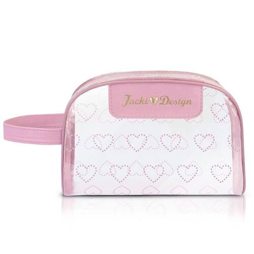 A necessaire com alça da coleção LOVE combina um design elegante e feminino, com detalhes românticos de corações. Feita de material transparente em PVC, facilita a visualização dos itens armazenados, além de ser impermeável e fácil de limpar. Possui amplo espaço interno para organização eficiente, detalhes em couro sintético, tag da marca e fecho em zíper para segurança dos seus pertences. Ideal para uso diário ou viagens. As necessaires da coleção LOVE complementam perfeitamente as malas e frasqueiras da mesma linha.