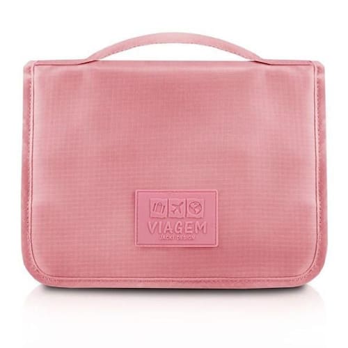 Necessaire com Gancho para Viagem Estampa Lisa Jacki Design Rosa -