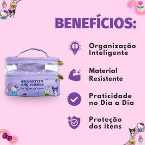 A Necessaire Dupla Hello Kitty and Friends é perfeita para organizar seus itens. Utilize os compartimentos para separar os produtos por tipo, facilitando o acesso e evitando bagunça. Ideal para viagens, trabalho ou uso diário. Experimente organizar seus itens por cor ou função para otimizar ainda mais o uso da necessaire.