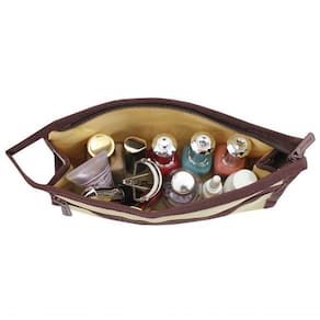 Necessaire com amplo espaço interno e bolso com zíper externo.
