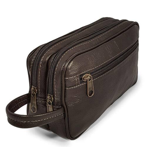 Características: - feita de couro - possui alça de mão com costuras reforçadas - a necessaire é forrada e acolchoada - possui amplo espaço interno - possui ferragens resistentes e banhadas - resistente a chuva