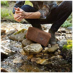 FULL GRAIN BUFFALO LEATHER Um Dopp com aquela incrível textura de couro que você adora. SACO DE TOILETRY MAIOR Este é maior do que o nosso necessaire e oferece mais espaço para guardar o que você precisa enquanto viaja. MAIS COMPARTIMENTOS Nosso Dopp de couro oferece compartimentos internos duplos, bem como 1 bolso interno com zíper. CARACTERÍSTICAS CONVENIENTES Nosso couro Dopp tem de comprimento x de largura x de altura, perfeito para um kit de barbear, kit de cosméticos ou outros itens de higiene. DISPONÍVEL EM 2 CORES Fornecido em preto ou marrom antigo Marca: Não Informado