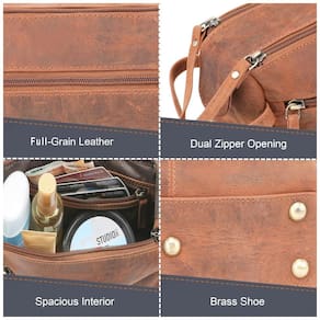 Feito à mão à moda antiga Nossa bolsa cantiga ultra estilosa é feita por artesãos em Rajasthan, Índia e tratada com técnicas de bronzeamento do velho mundo, então polida com óleo para um acabamento brilhante. Múltiplos compartimentos para itens essenciais com um interior espaçoso e vários compartimentos, esta bolsa de higiene feminina e masculina mantém seus produtos de barbear, higiene pessoal e cosméticos facilmente acessíveis. Resiste a inúmeras aventuras Por que se contentar com sacos de plástico de qualidade inferior ou de plástico que se desfazem Nossa bolsa de viagem masculina tem zíperes YKK fáceis de deslizar e costuras fortes, para que possa lidar com o uso pesado. Cabe em malas de mão Medindo apenas 12 x 25 x , esta bolsa de higiene pessoal de couro é ideal para o embalador leve. É especialmente projetada para ocupar pouco espaço em malas de mão e malas. Um presente apreciado Procurando presentes exclusivos para o Dia dos Pais ou para padrinhos de casamento Moderna e prática, nossa bolsa de higiene fará as delícias dos viajantes frequentes e também das pessoas que gostam de ficar organizadas em casa Marca: Não Informado