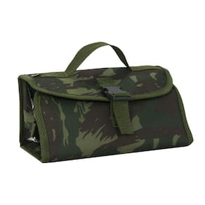 Necessaire Multiúso Camuflada Confeccionado em Nylon. Fechamento do estojo através de tiras aderentes e fecho tic tac. Alça para transporte. Três compartimentos em plástico com fechamento em zíper. Espelho. Compartimento para toalha de rosto. Altura: 51cm Largura: 23cm Medidas Aproximadas Marca: Não Informado