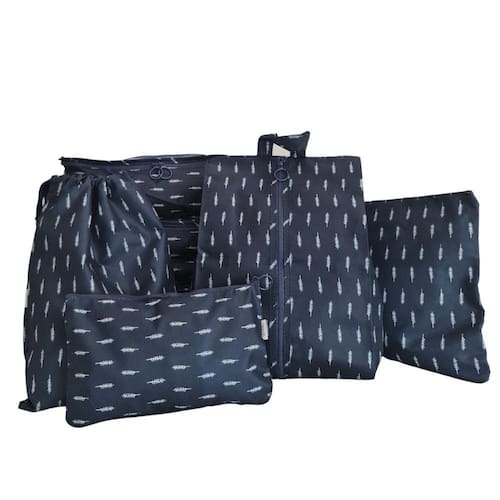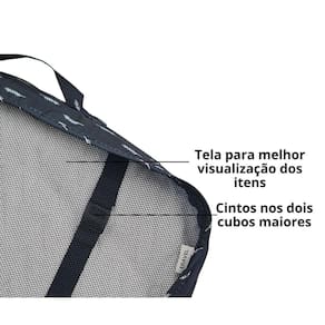 Necessaire organizador para mala de viagem kit 7 peças azul com branco Nós da mimos e viagens adoramos uma mala organizada, e nossos kits organizadores são as melhores opções para isto. Deixam a mala arrumada, você pode separar suas roupas de acordo com o uso que terão em cada uma das necessaires e assim facilitam a vida e evitam aquela bagunça na mala que conhecemos bem. No kit há os sacos para roupa suja também, e assim tudo ficará devidamente separado durante a viagem.Os organizadores são a prova d'àgua e de material resistente, são tanto para adultos como para crianças e indicados para todo tipo de viagem, do final de semana à praia a tão esperada trip na europa, para viagens de avião, navio, ônibus ou carro, e se não está em viagem também uma boa opção para organizar o closet utilizando o kit.O kit contém 7 peças nos seguintes tamanhos:Cubos:G: 40x30x12 cmM: 30x28x12 cmP: 30x20x12 cmNecessaires:1: 35x27 cm2: 36x26 cm3: 27x16 cm4: 34x24cmMaterial: poliéster
