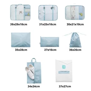 Necessaire organizador para mala de viagem kit com 7 peças cor azul claro