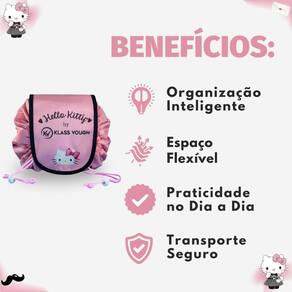 Esta necessaire é perfeita para diversas situações, desde a organização diária de maquiagens e acessórios até o transporte de itens essenciais em viagens e passeios. Ideal para o uso escolar, para presentear fãs da Hello Kitty ou para adicionar um toque de charme e funcionalidade à sua rotina.