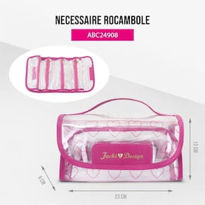 A necessaire rocambole da coleção LOVE combina um design elegante e feminino, com detalhes românticos de corações. Seus 4 compartimentos internos são revestidos com material PVC transparente, oferecendo praticidade e organização ao permitir que você mantenha seus itens à vista e facilmente acessíveis. Fabricada em PVC, é impermeável e fácil de limpar, com fecho em zíper suave e a emblemática tag da marca Jacki Design adornada com um pin de coração dourado. Ideal para organizar seus itens essenciais de higiene pessoal e cosméticos. As necessaires da coleção LOVE complementam perfeitamente as malas e frasqueiras da mesma linha.