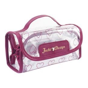 A necessaire rocambole da coleção LOVE combina um design elegante e feminino, com detalhes românticos de corações. Seus 4 compartimentos internos são revestidos com material PVC transparente, oferecendo praticidade e organização ao permitir que você mantenha seus itens à vista e facilmente acessíveis. Fabricada em PVC, é impermeável e fácil de limpar, com fecho em zíper suave e a emblemática tag da marca Jacki Design adornada com um pin de coração dourado. Ideal para organizar seus itens essenciais de higiene pessoal e cosméticos. As necessaires da coleção LOVE complementam perfeitamente as malas e frasqueiras da mesma linha.
